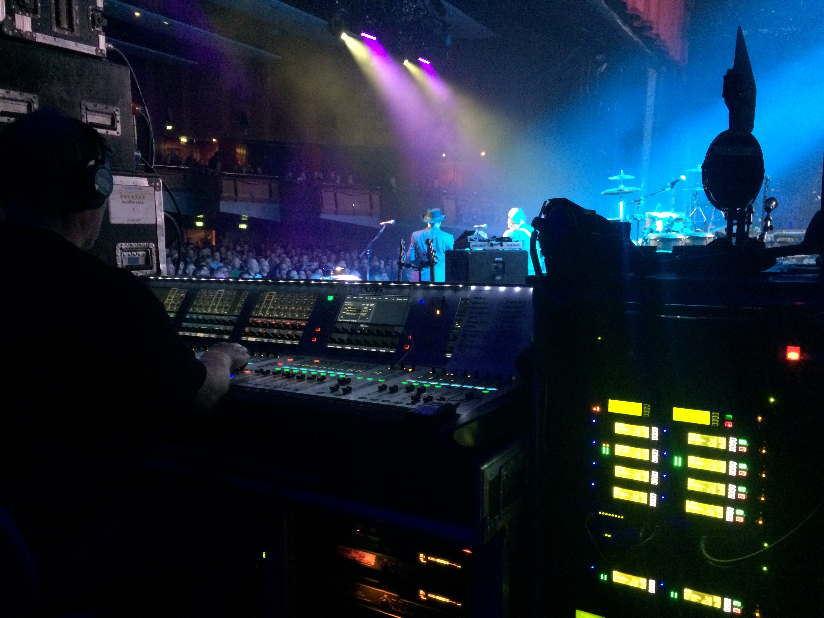 Peter Thompson, Squeeze’s Monitor Engineer, requested a Soundcraft Vi6 console for monitor duties. The higher than average bus count and quick access to 32 input faders on the top layer make this an ideal choice for a monitor desk. Gary Sylvester was put forward by ML Executives as the Monitor Technician. Gary also acted as Monitor Engineer for the support band Nine Below Zero.